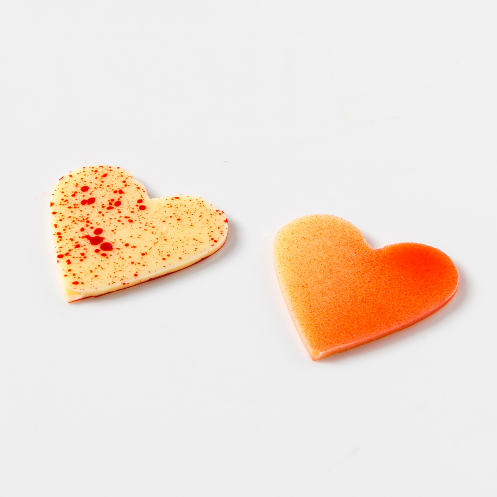 Flexible food-grade silicone mat for easy and creative decoration of monoportions, snacks and cakes in the shape of a heart in one size. Designed for chocolate, the silicone decorating mat is also suitable for isomalt, caramel, pastry and other pastries.