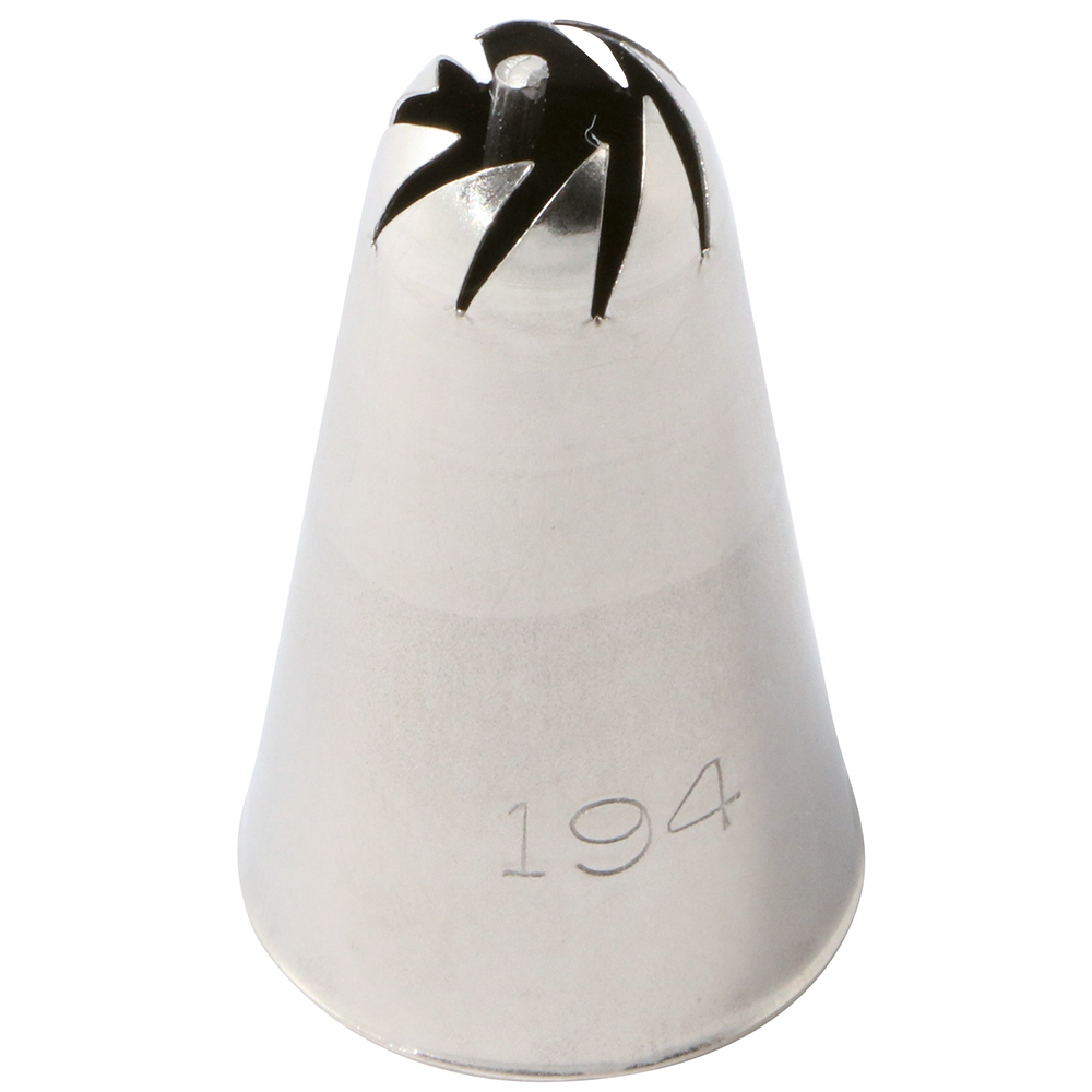 Stainless steel nozzle for sac à poche or pastry bag with a simple floral shape. This nozzle has no welding, ensuring uniform product outflow and high strength.